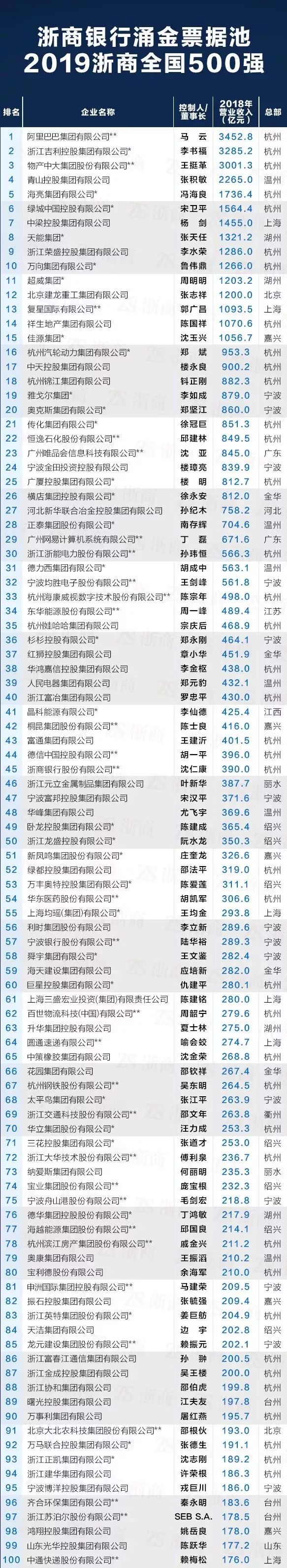 “浙商银行涌金票据池·2019浙商全国500强”全榜单